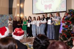 На высоком уровне провели концерт студенты группы Д-383 Оношко Мария на английском языке и Новосельский Владимир перевод на русский язык. Ведущие фестиваля не только представляли и поддерживали вместе со зрителями выступления участников, но и напоминали, как празднуют католическое рождество: традиции, обычаи и приметы.