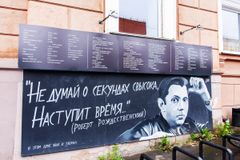 В скульптурной композиции на улице Кирова Роберт Рождественский и его друг поэт Владимир Морозов читают друг другу стихи. Чуть ближе к озеру на проспекте Ленина Рождественский с баннера призывает нас не думать о секундах свысока.