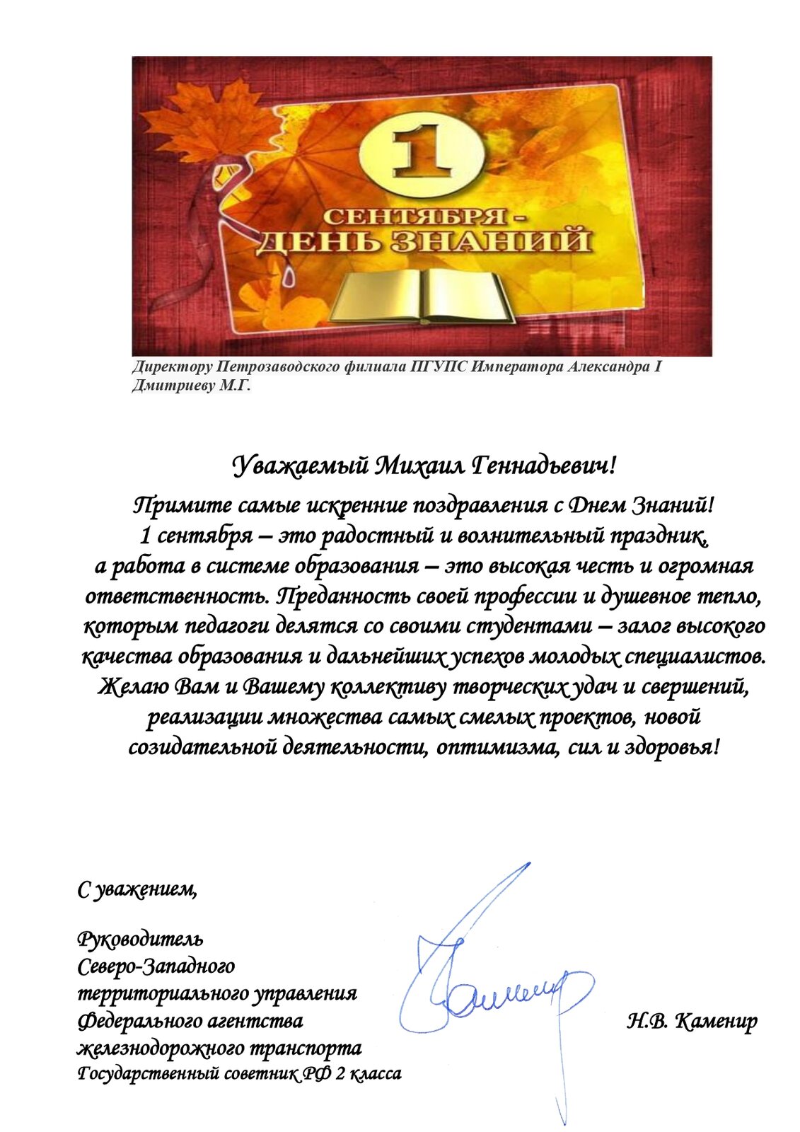 Поздравление с Днем Знаний от СЗТУ Росжелдор